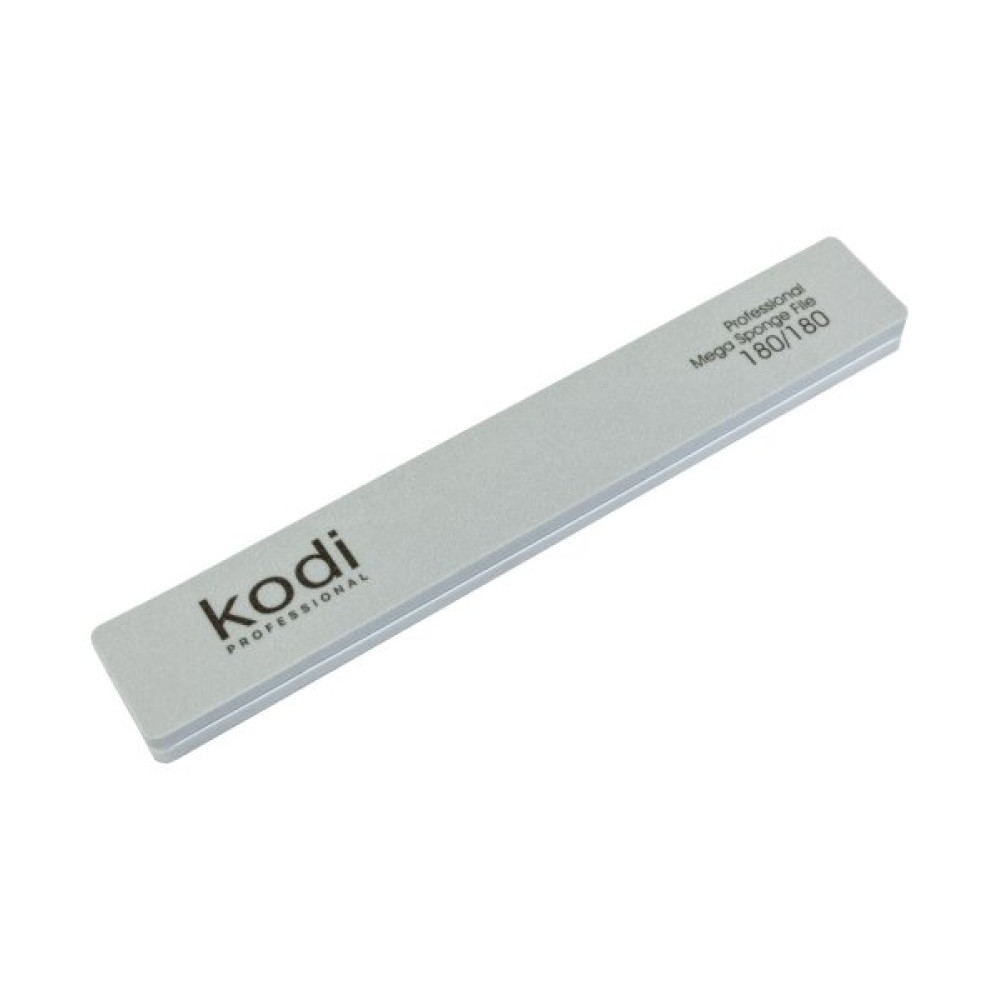 №162 File-buff for rectangular nails, abrasiveness 180/180, color: grey, side elements: white,size: 178*28*11.5 мм, with logo "Kodi Professional"